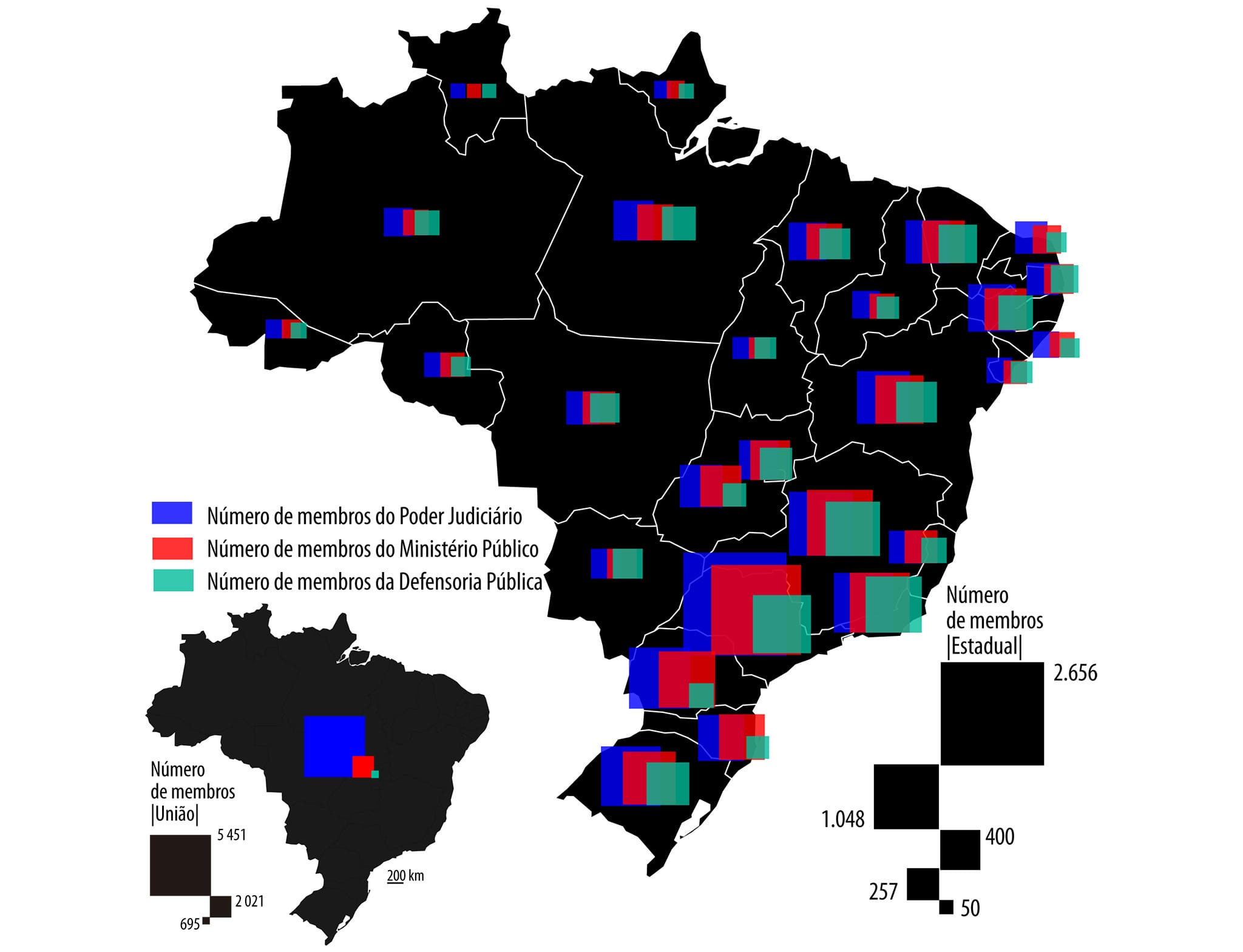 Realizando a análise comparativa entre o quantitativo de membros da Defensoria Pública, do Ministério Público e do Poder Judiciário por unidade federativa, os dados revelam que a iniquidade entre as instituições que compõem o sistema de justiça ainda subsiste em todo o país, em maior ou menor medida.