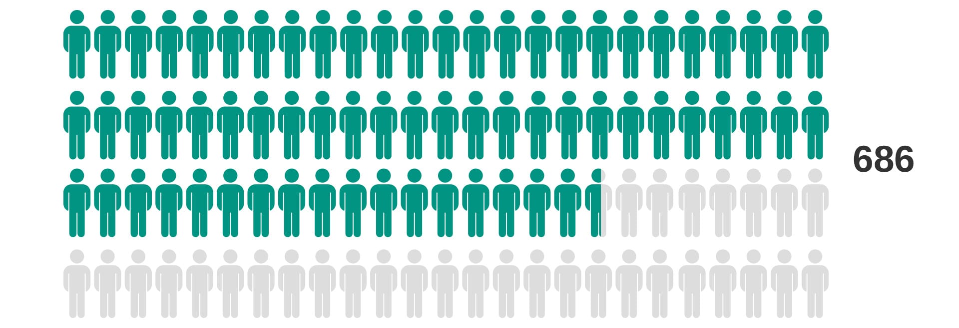 A Defensoria Pública da União possui atualmente 695 Defensores(as) Públicos(as), representando 9,4% do quantitativo total de Defensores(as) Públicos(as) do país.