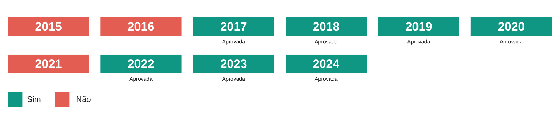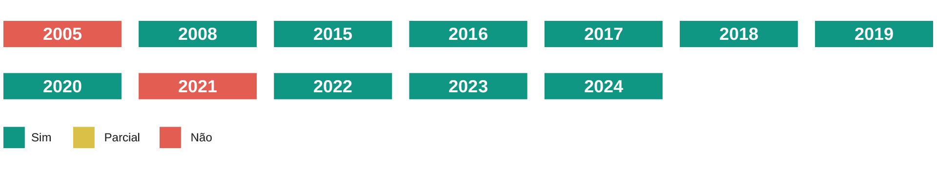 | Ano | 2020 | 2021 | 2022 | 2023 | 2024 |