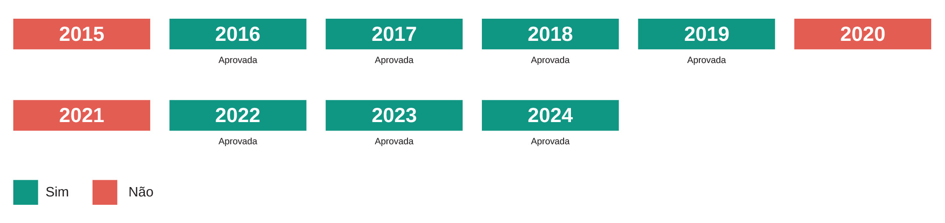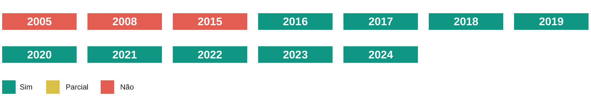 | Ano | 2020 | 2021 | 2022 | 2023 | 2024 |